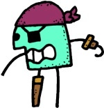 O marinheiro nota que o pirata tem uma perna de pau, um gancho e um